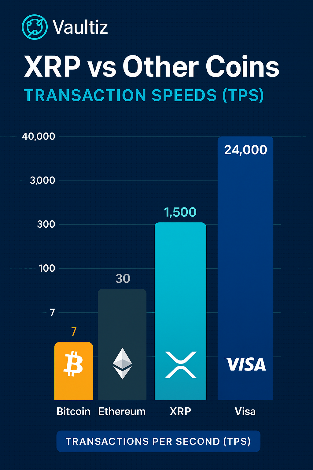 Let’s look at how XRP stacks up in terms of transactions per second (TPS):